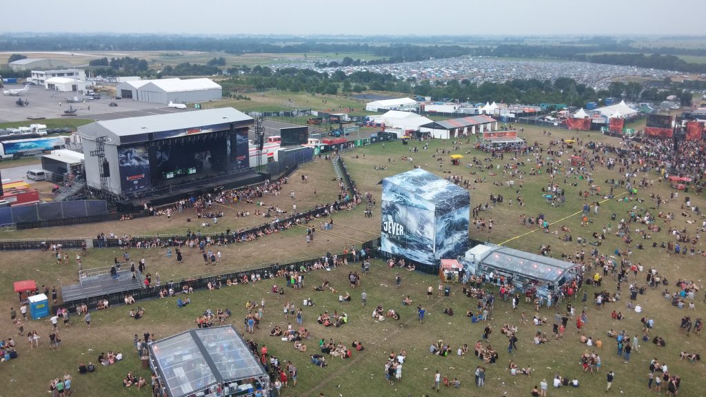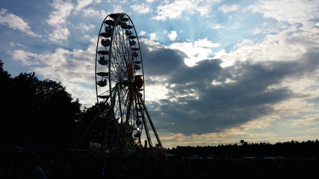 Das Open-Air-Gelände hat sich nicht so richtig verändert. Die Fire Stage und die Water Stage standen an ihren üblichen Plätzen, 90° zueinander versetzt. Das Riesenrad war auch wieder mit dabei, das einen schönen Überblick über das Gelände bot. Statt dem Jägermeister Haus gab es in diesem Jahr einen Platzhirschen, der mit einer Höhe von 20 Metern gewaltig aussah. Es gab vielerlei Essenstände, ein paar Foodtrucks und sonstige Kleinigkeiten.